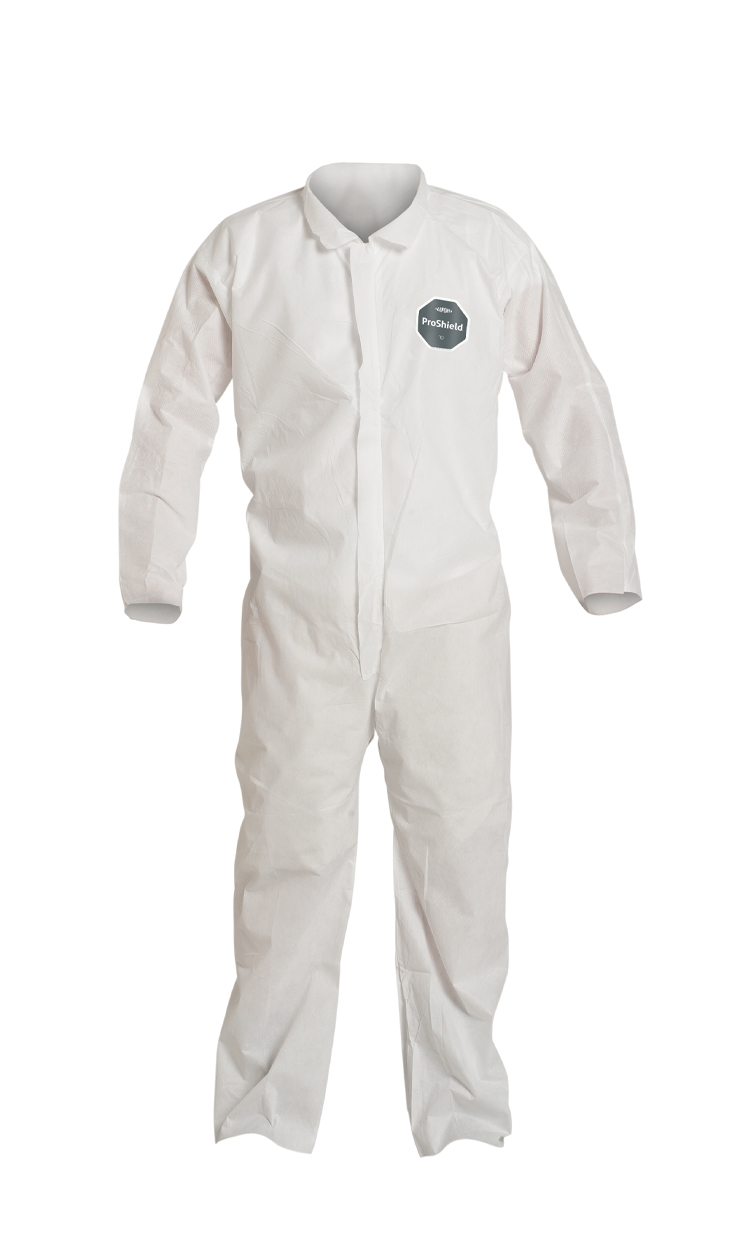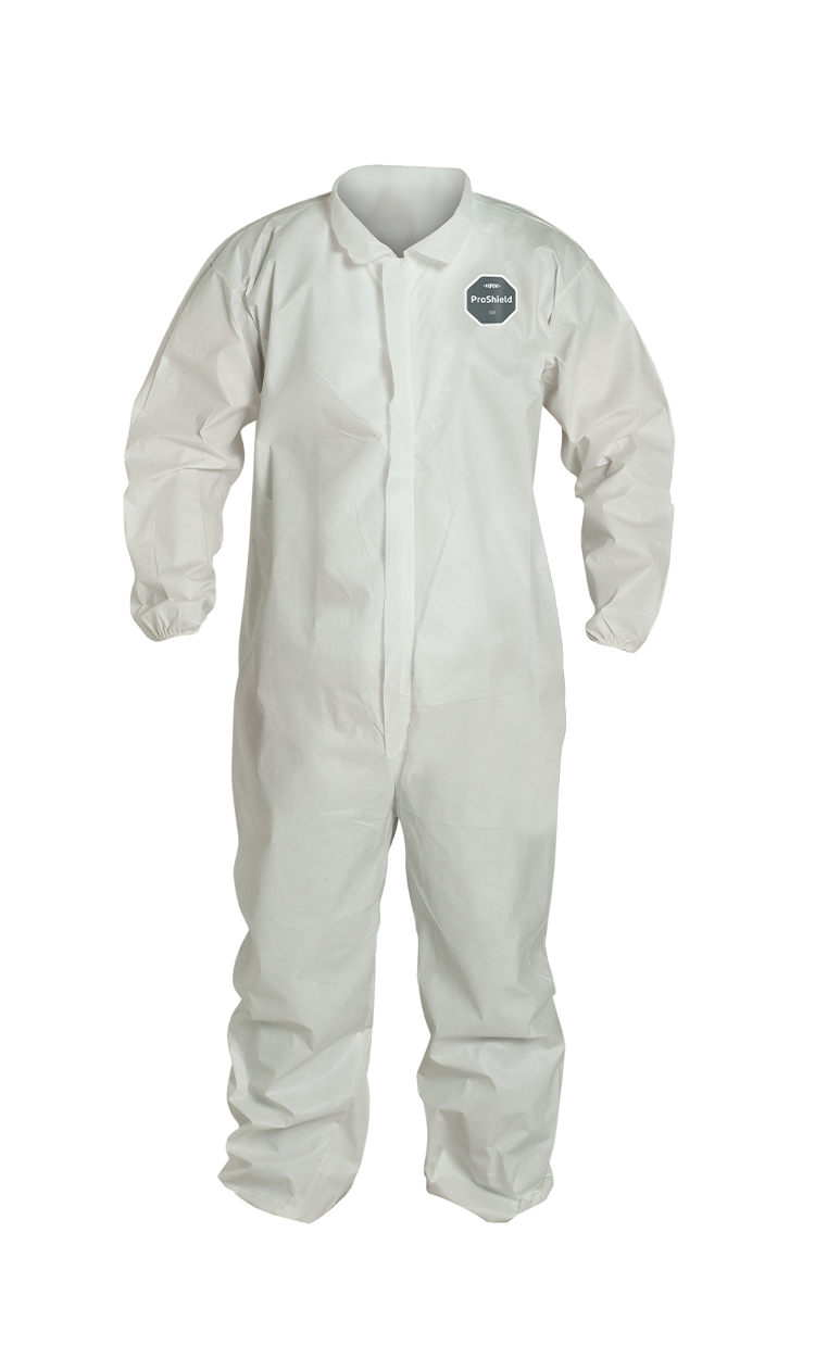 DuPont™ ProShield® 10, spunbond meltblown spunbond (SMS) garments, are made to the high quality standards you have come to expect from DuPont. ProShield® 10 garments have been optimized for comfort, softness and breathability while enabling you to cut costs for disposable garments. DuPont™ ProShield® 10 disposable garments are designed for workers in a range of industries for nonhazardous dry particle and light liquid splash applications.