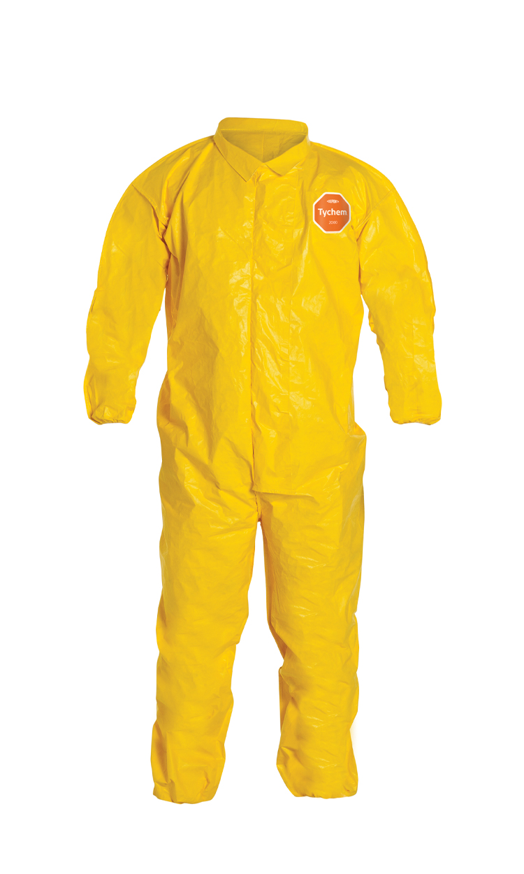 A lightweight, and durable fabric, Dupont Tychem® 2000 fabric provides at least 30 minutes of protection against >40 chemical challenges. Tychem® 2000 is used for light splash protection in a variety of industrial environments, including petroleum refining, pulp and paper manufacturing, food processing, chemical processing, and pharmaceutical manufacturing
