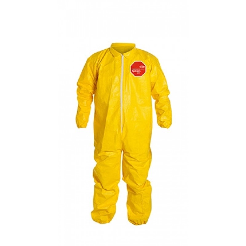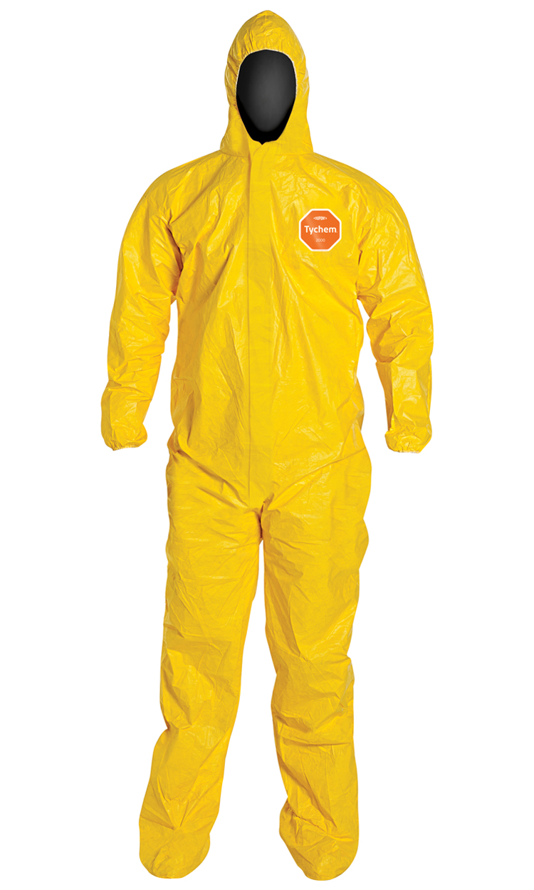 DuPont™ Tychem® 4000 Coveralls deliver effective protection against a wide range of chemical environments. Tychem® 4000, utilizes Saranex™ 23-P film laminated to Tyvek® fabric to provide a rugged and durable fabric that resists abrasion. Tychem® 4000 fabric provides at least 30 minutes of protection against >124 chemical challenges. Typical applications: chemical mixing, hazardous remediation, emergency medical response, paint spraying, and nuclear environments.