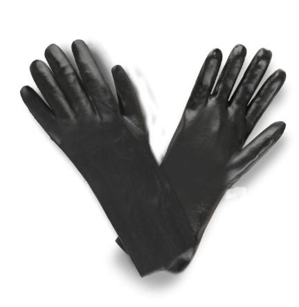 This smooth-finish, PVC glove features an interlock lining and 14-inch length. PVC provides protection against caustics, acids, bases, detergents, and solvents. It offers excellent resistance to most acids, oils, animal fats, caustics, petroleum hydrocarbons, and alcohols.