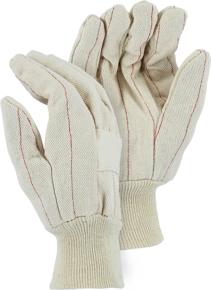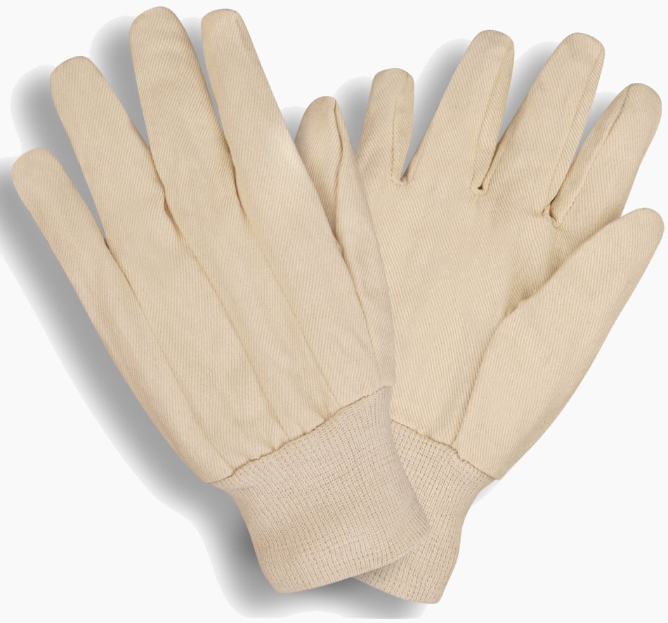 Cotton canvas gloves offer hand protection in a variety of work applications. These ramie/cotton blend canvas gloves feature a knit wrist and clute pattern. A clute pattern means it’s sewn with seams on the back of the glove at every finger. This glove features a wing thumb.