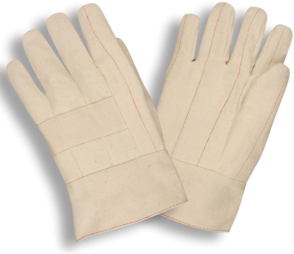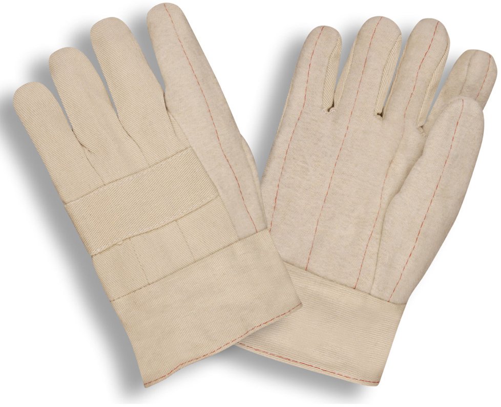 These 26 oz. two-layer cotton hot mill gloves feature a 2.5 inch band top cuff, clute cut and a wing thumb. They are ideal for operations requiring a glove that can safely withstand mild temperatures.