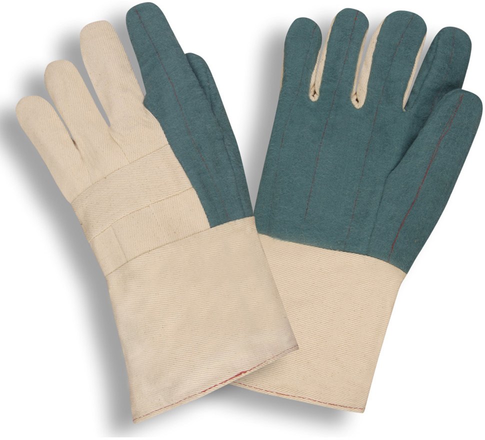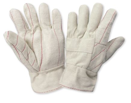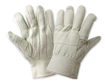 This standard, 24-ounce, cotton hot mill glove provides intermittent heat contact protection up to 250-300° F and is safe for food contact. It features a quilted palm, thumb and forefinger and a knuckle band for added comfort and protection. It is equipped with a band top cuff for a more secure fit.