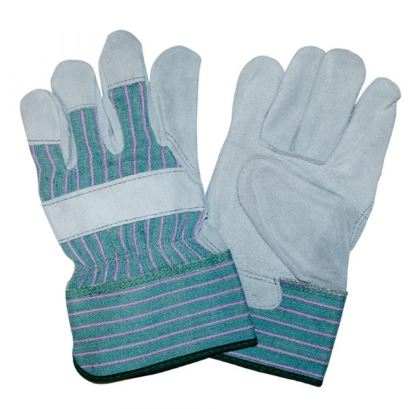 This cowhide, split leather palm is derived from the shoulder section of the hide. It features a pink/green striped canvas back, 2.5-inch starched safety cuff, and a gunn pattern – the most common pattern used for work gloves.