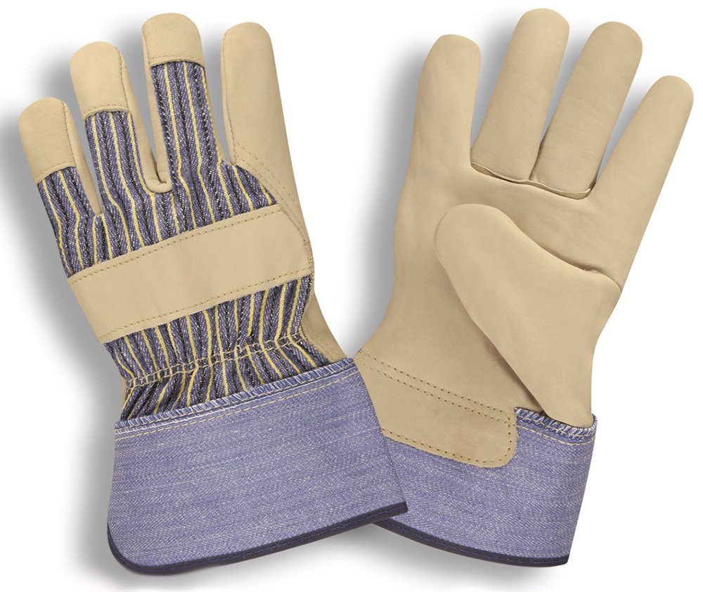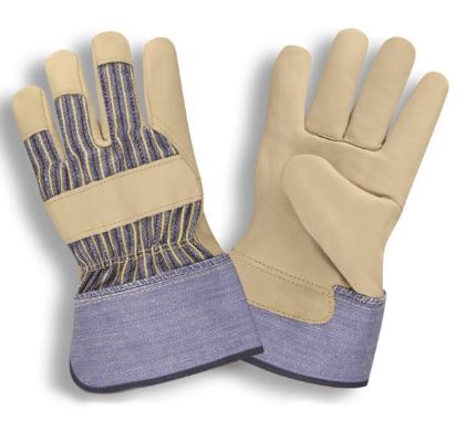 This premium shoulder, cowhide leather palm features a striped canvas back, 2.5-inch rubberized safety cuff, and gunn pattern – the most commonly used pattern in work gloves.