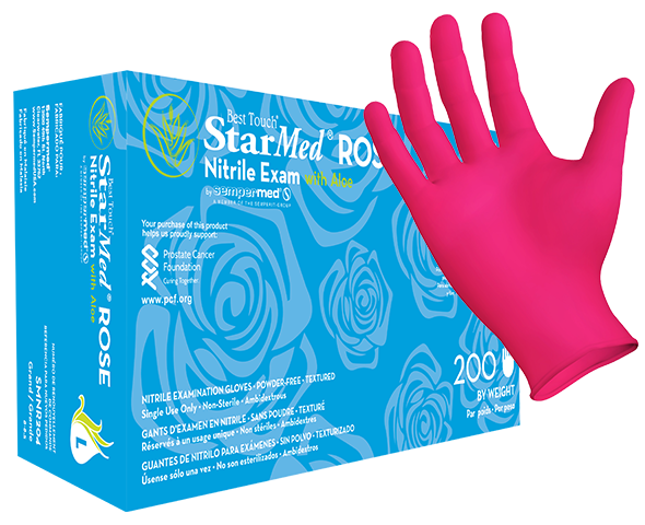 StarMed® Rose Nitrile with Aloe & Vitamin E possesses the necessary qualities to enhance the ambiance of any setting, ranging from emergency rooms to examination rooms. The Aloe & Vitamin E soothes hands and helps prevent skin irritation. The StarMed Rose dispenser features Smart Dispense Technology Single Glove Delivery packaging reducing wrinkles and allowing for unmatched efficiency. Recommended Applications: Medical, Dental, Vet, Tattoo, Cosmetology