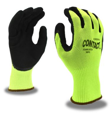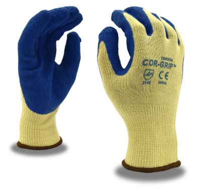 Natural rubber latex gloves offer exceptional gripping power and outstanding protection against punctures and abrasion. The seamless, machine-knit shells and the high elasticity of the latex coating, make these gloves form-fitting, flexible, and comfortable. The Cordova COR-GRIP II™ glove provides a 10-gauge, yellow polyester/cotton shell with a blue, crinkle latex palm coating.