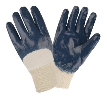 This glove has a fully coated front of hand nitrile dip and 3/4 coated back of hand nitrile dip with a band top cuff. Nitrile resists oils, fuels, many organic solvents and excellent performance in oil and grease applications. It features cotton jersey support that is comfortable and absorbs sweat.
