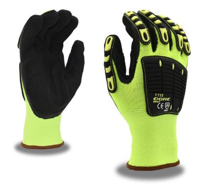 OGRE™ stands for Oil, Gas & Refining Equipment. The Cordova OGRE™ gloves are designed for those down and dirty jobs that require gripping power and impact protection. The OGRE Impact™ glove protects against a wide-range of hazards. It features a 13-gauge, hi-vis polyester shell, TPR protectors, reinforced thumb crotch, and padded sandy nitrile coating.