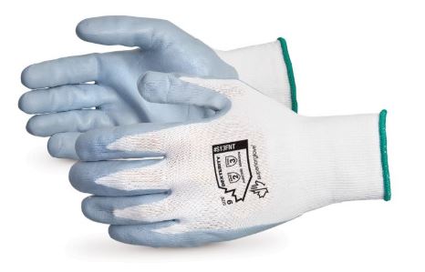 Supported gloves are made with fabric linings that provide support to a protective outer coating, such as nitrile. Nitrile is a synthetic rubber developed as a substitute to natural rubber. It protects against organic solvents, oils, bases, and animal fats. It provides excellent resistance to abrasion, snags, punctures, and cuts. This glove features a smooth nitrile finish, an interlock lining and a knit wrist.
