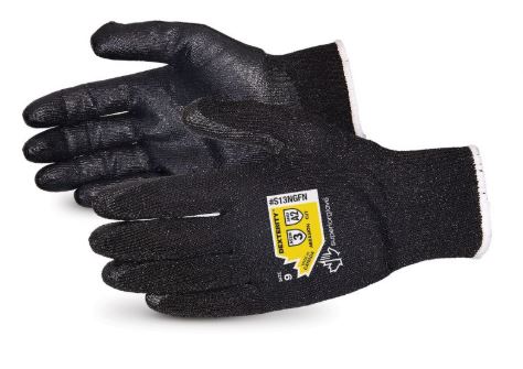 This glove is made of composite filament fiber blend that is ANSI cut-level A2. It features a foam nitrile palm coating for a better grip. It is treated with Ultra-Fresh to achieve 99.9% antimicrobial status.