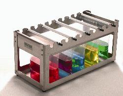 LABRACK® is designed to store up to ten 400-series blender bags in an upright position. Hangs single or dual-chamber blender bags vertically and allows bags to be inserted and removed easily without disturbing other samples. An integrated sealed basin contains spills. Ideal tool for storing samples while incubating. Ten closure clips are included and shipped with each storage rack.