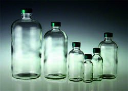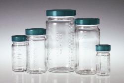 These Straight-Sided Round Bottles are made of clear, flint glass. They have wide mouths for easy access to samples. The attached caps are either Teflon® and PTFE-Lined or Pulp and Vinyl-Lined.