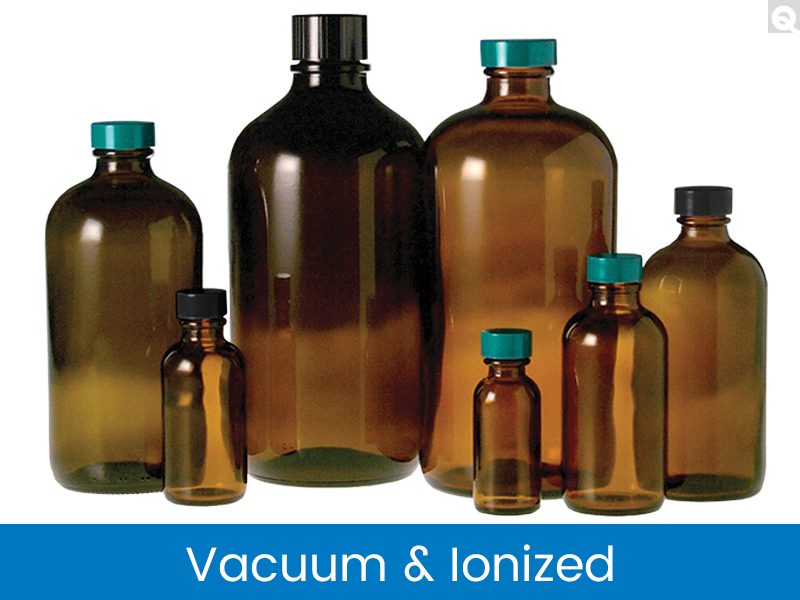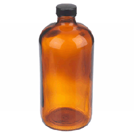 These Boston Round Glass Bottles have attached Pulp, Vinyl-Lined Caps. They are available in Clear or Amber Glass. Use amber glass for light-sensitive compounds.