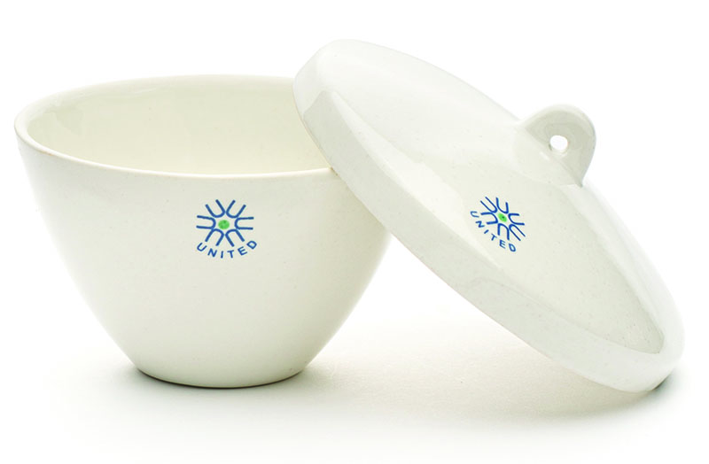 United Scientific wide form porcelain crucibles feature and inner and outer surface glaze with the exception of the outside bottom and rim. Withstands continuous operating temperature of 1150°C. To prevent thermal stress cracks, it is strongly recommended that the heating/cooling rate not exceed 200°C per hour. The porcelain crucibles offer excellent resistance to acids and alkalies (Except for hydrofluoric acid). Click on individual items below for individual specifications.