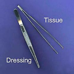 Thumb dressing forceps are made from stainless steel and have a serrated grip for precision dissecting.