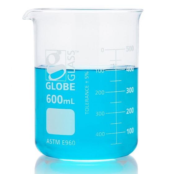 Globe Glass™ beakers are made with uniform wall thickness, flat bottoms, and low expansion 3.3 Borosilicate beaker glass making them a strong and durable choice with excellent resistance to thermal shock. The lab beakers have beaded rims and formed spouts to facilitate accurate and steady pouring of liquids. Globe Glass low form Griffin style graduated beakers are available in sizes from 10mL to 4000mL.