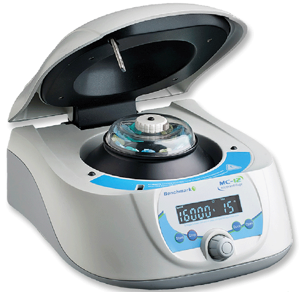 Benchmark’s MC-12 is the first and only compact microcentrifuge capable of achieving centrifugal speeds up to the critical threshold of 16,000 xg, often held as the standard for many molecular biology/DNA protocols. Its’ brushless, maintenance free drive system makes it powerful, yet compact enough to allow each work station to be fully equipped with a personal centrifuge.