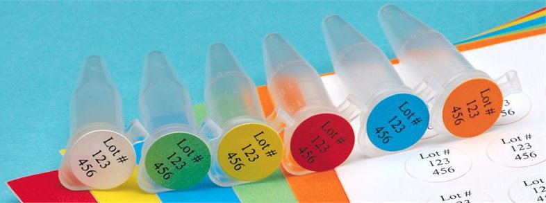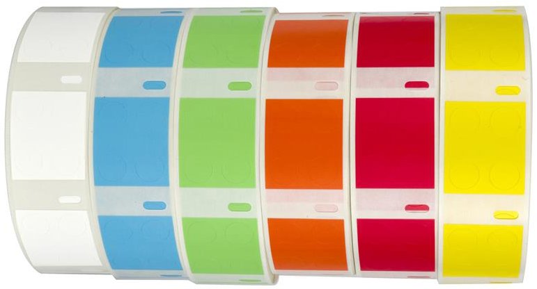 Tough-SpotsŪ will accept any marking instrument. Just write or print from a laser printer (instructions included for printing from Microsoft Word), peel back the label and affix to the top or side of a microtube or cryovial. Rainbow packs are available for laser sheets, and consist of four sheets of each of the following colors: blue, green, orange, red, and yellow (20 total sheets). Laser sheets are polyolefin, roll label stock is polyvinyl.