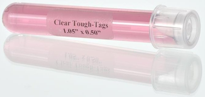 Tough-TagsŪ are chemically inert polyester labels that strongly adhere to all plastics and other materials. They are temperature resistant from -40°F to 250°F (-40°C to 121°C). These labels will withstand autoclaving, boiling water baths, freezer temperatures, organic solvents, caustic agents and other challenges without peeling, cracking or falling off. For best adhesion it is recommended that siliconized surfaces be avoided.