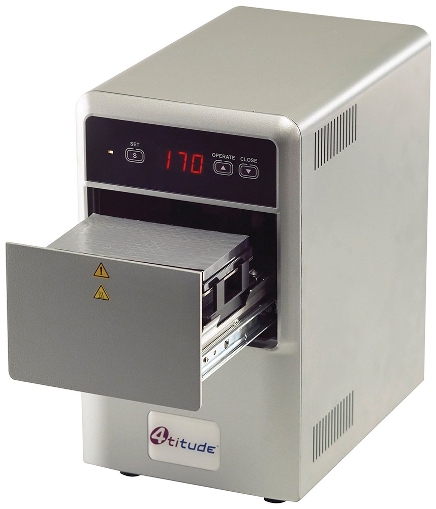 For better sealing of those films which have a tendency to curl, 4titude® offer sealing aids. A weighted platen (4ti-0602) for use with deep well blocks is provided with the unit and a sealing frame for use with all other plate designs is supplied when ordering the optional 4ti-0625 adapter.