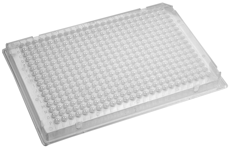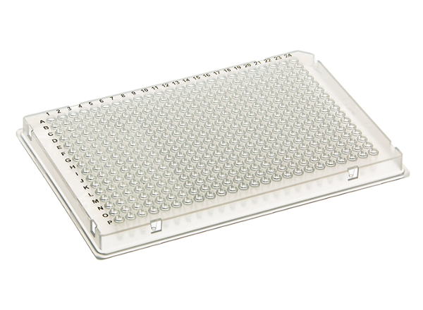 These 384 Well microplates are non-pyrogenic, free of detectable DNase, RNase, and human DNA, and manufactured under DIN ISO 9001 guidelines with full traceability via a defined LOT number system. Compared to the standard 96-well plate, it offers four times the number of wells with reduced volume (138 µl vs. 382 µl), 4.5 mm well spacing. It is compatible with standard lab automation, features low biomolecular binding, high temperature tolerance, and resistance to common chemicals like DMSO.