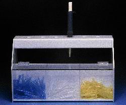 Keep pipettors and tips together with the convenient Pipettor and Tip Storage Station. The top rack holds six pipettors, while three bins store a large supply of bulk pipette tips. The station is constructed of durable white acrylic, while the bin fronts are made of transparent acrylic for easy viewing of contents. Measures 9-1/2H x 16-1/2W x 6-1/2"D (24 x 42 x 17cm).