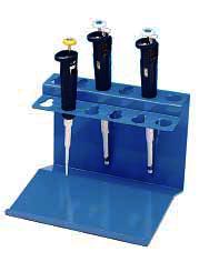 The PoxygridŽ Microliter Pipettor Rack has two rows designed to hold most popular brands of pipettors, and provides a convenient, easy-to-reach storage space. The rack has 10 spaces for pipettors and two large round holes which both accommodate a Drummond Pipette-AidŽ pipette filler.