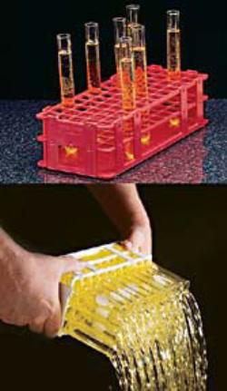 The MultiRackTM is made of three-tiers to facilitate the insertion and stability of tubes. The base tier has rounded wells with drain holes. Convenient handles on each side of the rack will ensure a safe grip when carrying it around. Interlocking feet allow stacking. Series S600-13 will accommodate all tubes up to a diameter of 13 mm while series S600-16 will accept tubes up to 16 mm in diameter including 15 ml centrifuge tubes. Model S600-30 is perfect for accommodating up to 18 x 50 ml centrifuge tubes. Autoclavable at 121 °C for 20 minutes. Available in five attractive colors.