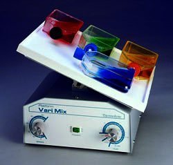 The Vari Mix Platform Rocker is ideal for developing cell cultures, viral suspensions and immunoassays, and for staining and destaining gels. It provides steep-angle rocking, with a platform angle that is adjustable from 1° to 48° from the horizontal. The smooth wave rocking motion can be adjusted variably from a gentle 5rpm to a more vigarous 30rpm for a more thorough mixing. The precision timer allows up to two hours of automatic operation at 60Hz, or three hours of automatic operation at 50Hz. Continuous mode setting allows longer operation.