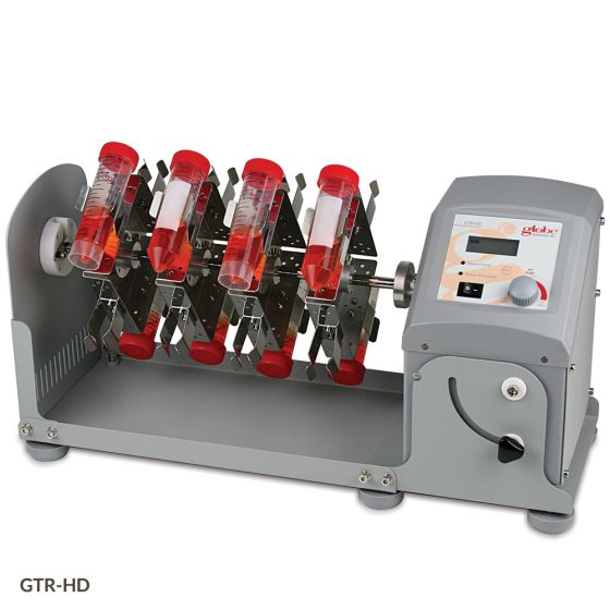 The Globe Scientific GTR-HD horizontal tube rotator provides a slow or vigorous mixing of biological samples and solutions with advanced features. Adjust the speed using the parameter adjustment knob on the front panel to your desired level of mixing. The rotator comes with a rotisserie type stainless steel 16x50mL vertical tube holders.