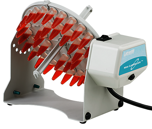 The Mini LabRoller Rotator is uniquely designed so that the level of agitation can be adjusted from gentle rolling, through two levels of tumbling, to forceful end over end mixing simply by changing the rotisserie position.
