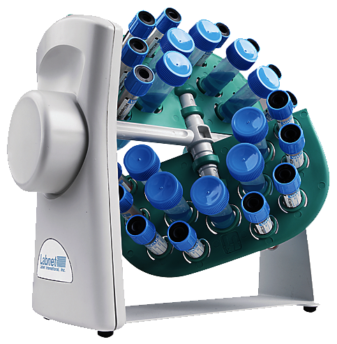 Labnet's Revolver lab sample rotator accepts a variety of tube sizes and mixes them horizontally, vertically, or any position in between. Changing the mixing angle is easy simply turn the rotisserie. No tools are required.