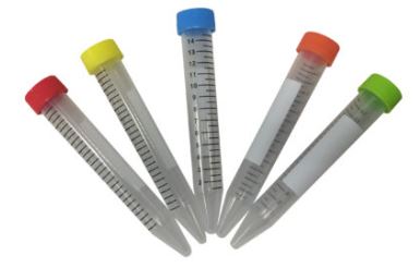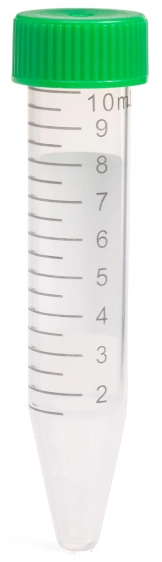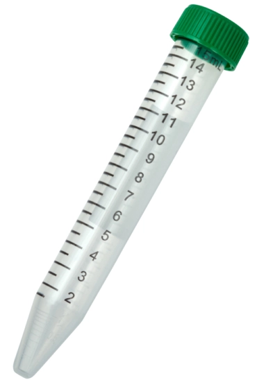 Conical 15 mL centrifuge tubes are made of premium polypropylene for clarity and centrifugal strength. Tubes and caps may be frozen at temperatures as low as -86˚C. The maximum centrifugal force is 12,000xg. Caps have a flat top surface for easy marking and labeling.