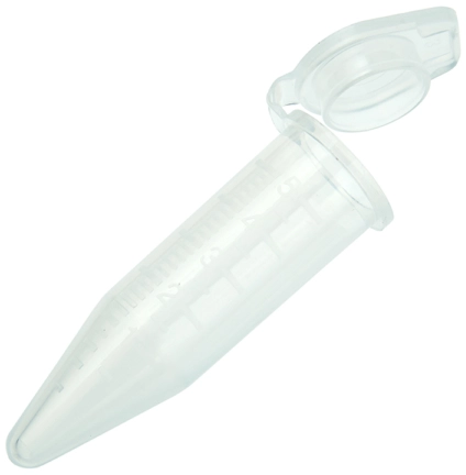 CellTreat’s Sterile 5ml macro centrifuge tubes are a convenient as a micro-centrifuge tube but include the ability to process larger samples – up to 5ml. This tube’s diameter and shape is the same a stand 15ml conical bottom centrifuge tubes and have a frosted marking spot for easy identification. The center of this tube’s cap has a thin membrane type area designed to easily puncture and access with a syringe. Flat cap is attached and easily to open and close conveniently with one hand. Includes engraved graduations with 0.2mL increments.