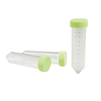 These conical 50mL centrifuge tubes are made of premium polypropylene, with exceptionally uniform wall thickness for clarity and centrifugal strength. Tubes and caps may be used for sample storage at temperatures as low as -86°C. The maximum centrifugal forces are 15,000xg. Tubes and caps are suitable for stem cell research and certified sterile, RNase, DNase, and Pyrogen free.
