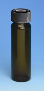 Vials, Precleaned, 40ml, Amber Glass, w/ Dust Cover and Foam pkg., 72/cs
