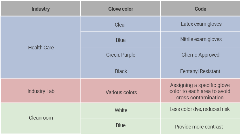 Popular glove color codes by industry