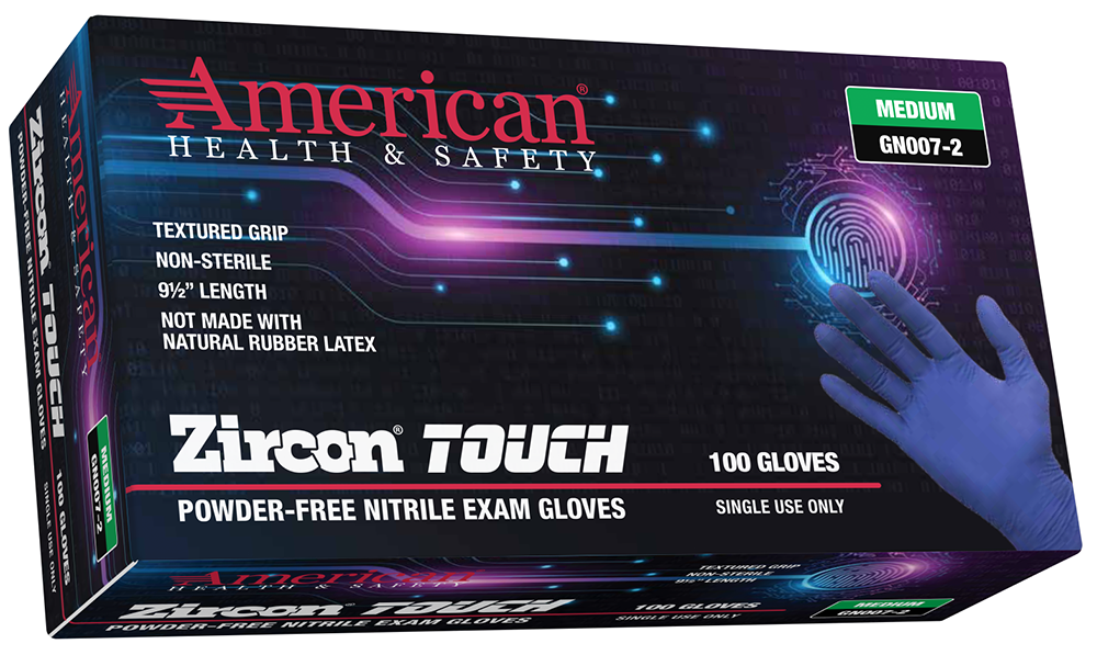 American Health & Safety™ GN007-3 Zircon Touch® Blue Nitrile Exam Gloves, Powder-Free, 1000/Case - Large