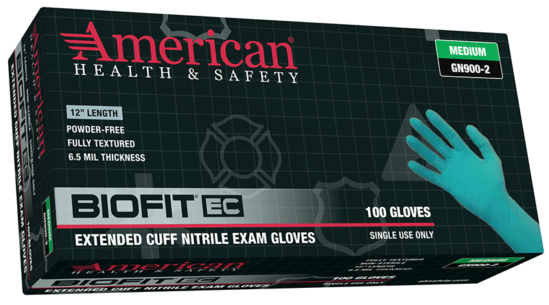 American Health & SafetyŽ GN900-4 BIOFIT EC Powder Free Nitrile Exam Gloves, Extended Cuff, 6 mil, 1000/Case - X-Large