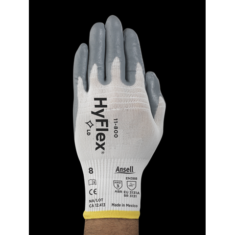 Ansell® HyFlex® 11-800 Gray/White Foam Nitrile Palm Coated Gloves, Size 8 - Sold by the Pair