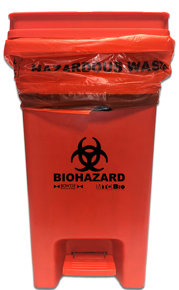 MTC's BowTie™ Bags are designed to fit perfectly inside their corresponding biohazard bins. The bins have a hands-free lid, allowing for quick disposal and a hygienic, touchless experience with just a simple step on the pedal. The smaller A8000B bin pairs well with 12-gallon bags, while the larger A8002B XL bin is ideal for the 30-gallon BowTie™ Bags.