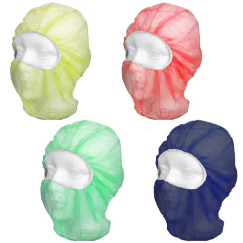 Polypropylene disposable bouffant and beard hoods product surroundings from hair or head contamination.