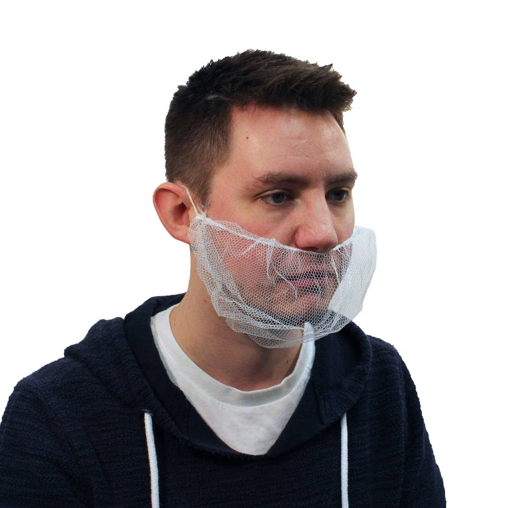 Keystone® 1/16" white nylon beard cover is designed to easily slip on and be held in place with a comfortable elastic back. It is ideal for use in food plants and pharmaceutical and lab environments.