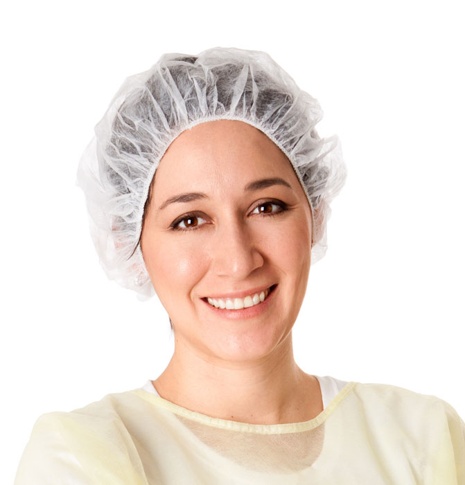 Keeps hair, particulates and possible bacteria from contaminating products. These non-woven fabric caps are spunbond, sanitary, roomy, and the bouffant styling ensures a non-binding fit. Heavy-duty, deluxe elastic band. Flame resistant. Meets FDA 510K and USDA requirements for medical, pharmaceutical, labs, and food preparation.