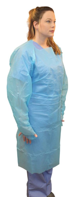 These isolation gowns are made of a high quality, virgin polyethylene material that combines flexibility and resistance to chemical, food and light contamination. Component materials comply with FDA regulations for food contact.