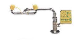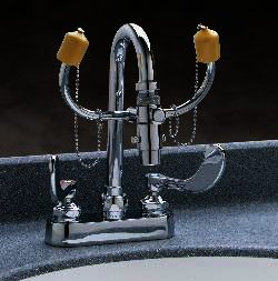 Swing-Activated Eye and Eye/Face Washes mount to a counter or a wall next to a sink. TheSwing-Over unit rotates horizontally and is counter mounted only. TheSwing-Down unit swings vertically and is also counter mounted. A 90° swivel activates eyewash over the sink and begins the flow of water used to cleanse the eyes. Spent water drains into the sink. The space-saving station stows neatly to the side of the sink when not in use. Features twin spray heads which include a flow control and pop-off dust covers. All units include a safety sign and inspection tag. Water supply: 1/2¯ IPS (female). Meets ANSI Z358.1-2004 Standards. SEI Certified.