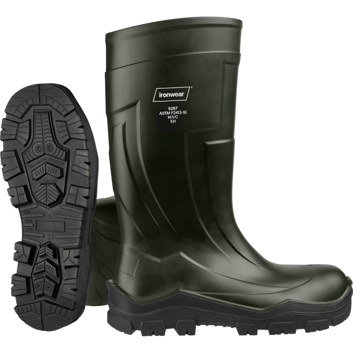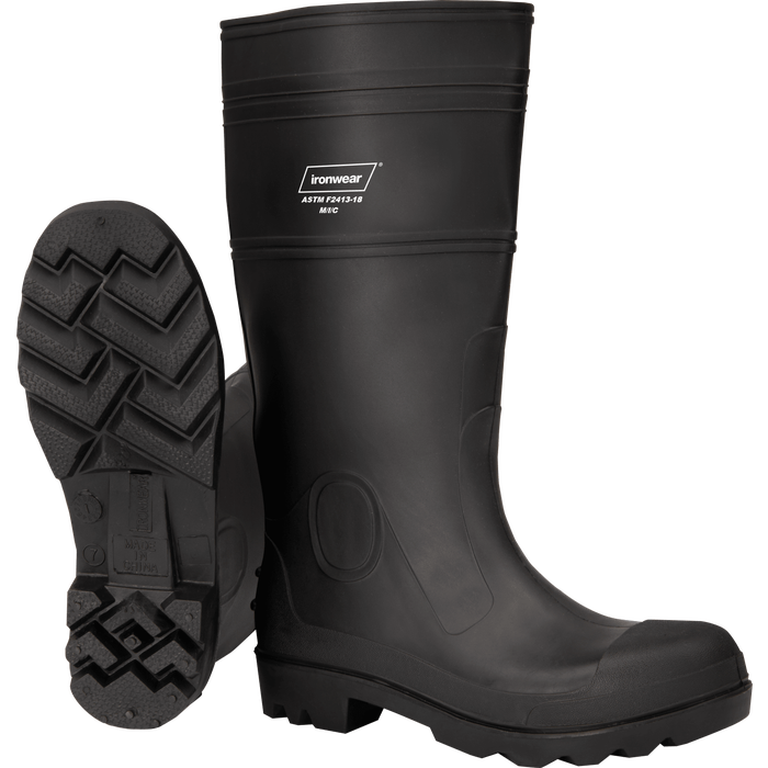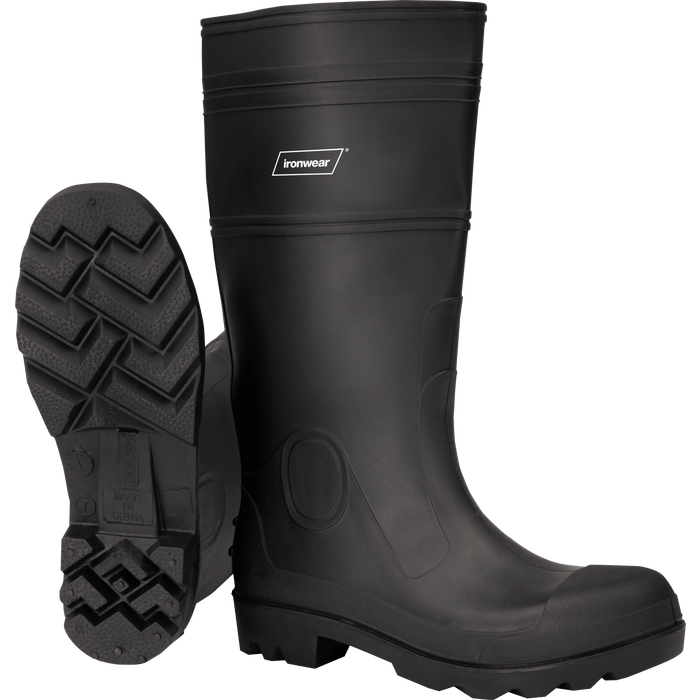 This Ironwear waterproof PVC boot stands at a height of 16 inches and comes in black. It features a polyester lining and steel toe protection for added safety. Designed to fit over your foot or sock, this boot is ideal for tackling messy work conditions. With its cushioned insole, you can work comfortably without worrying about getting wet.