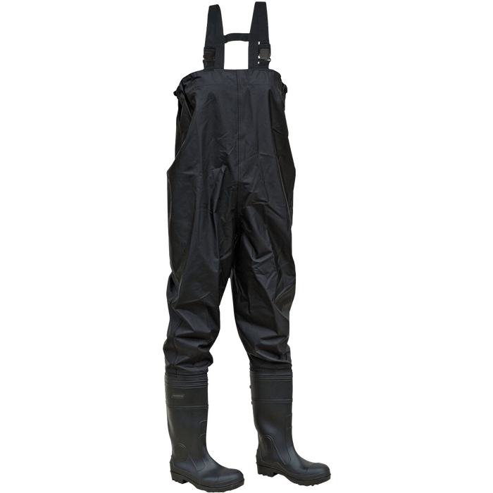 These Ironwear Chest Waders provide complete waterproof protection and come equipped with a durable steel toe that not only meets but surpasses ASTM F2413-11 safety standards. The PVC hip boots feature specially designed treaded soles that deliver superior grip and slip resistance in wet conditions.