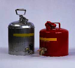 Reduce the danger of explosion resulting from ignition of vapors by storing flammable liquids in these Eagle® Faucet Cans. The Faucet dispenses small amounts of flammable liquids safely, and has either a brass or stainless steel drip-free faucet.